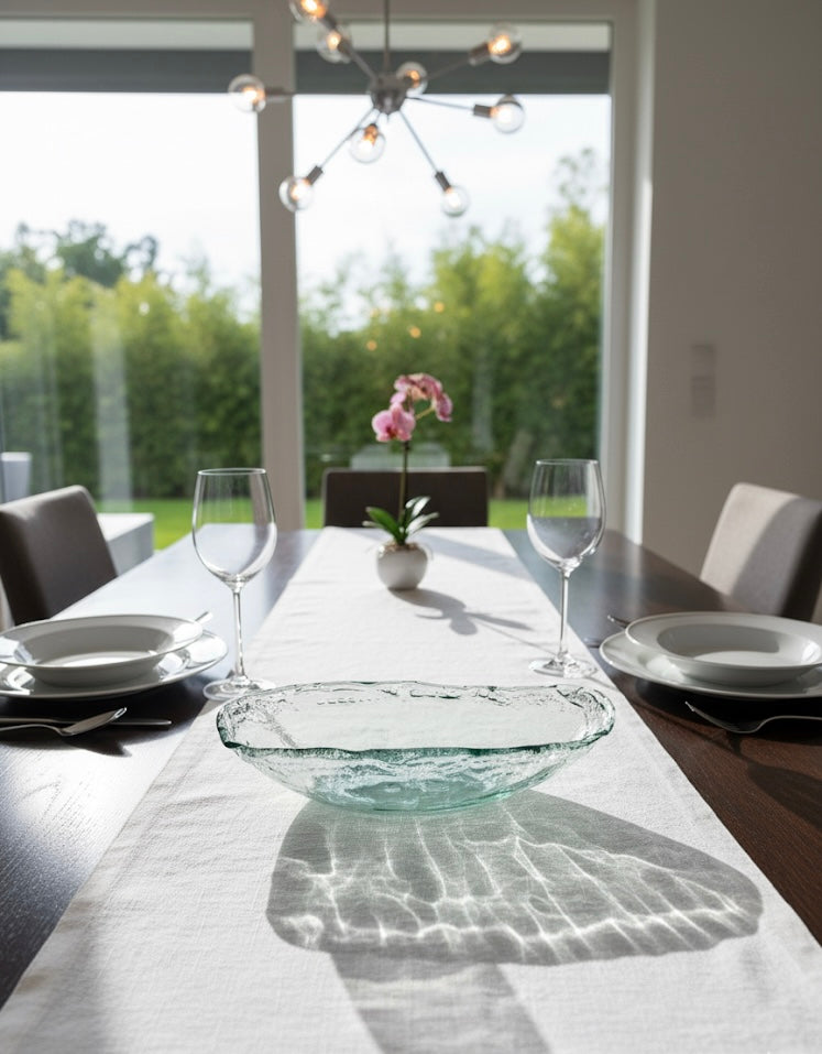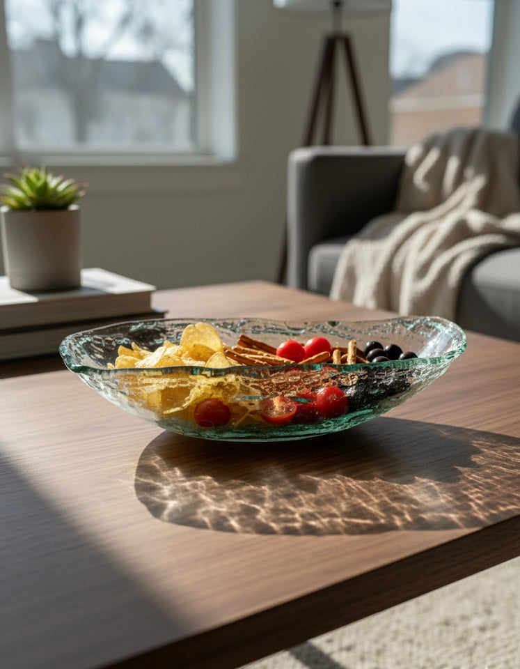Add elegance to your table with this textured glass bowl featuring a wavy rim and artisanal design. Perfect for serving snacks, hot sauces or as a decorative item on your coffee table