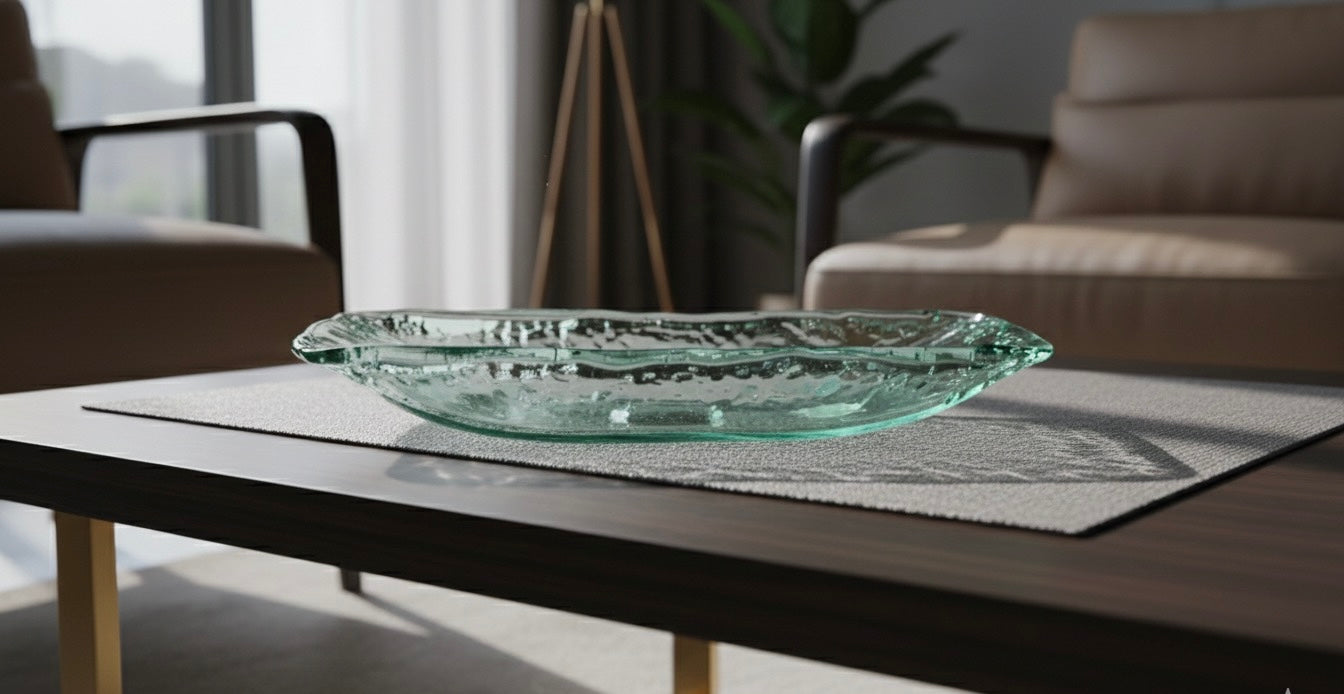 Add elegance to your table with this textured glass platter featuring a wavy rim and artisanal design. Perfect for serving cheese, snack and fruits, or as a decorative centerpiece, this plate blends functionality with timeless style.